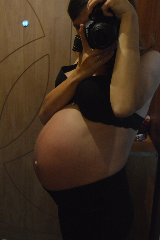 Про размер живота все твердят разное - кто говорит, что маленький, другие уверяют, что очень большой, и даже интересуются, нет ли у меня многоводия... А я считаю, что он идеальный - не много и не мало. Кстати, Вячеслав нас вчера с мужем просто покорил, так основательно выставив стопку - чаще мы видим коленочки или локоточки