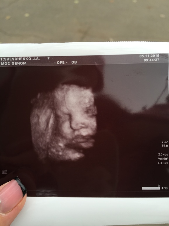 Сегодня была на Узи. Все параметры в соответствуют сроку, все хорошо, плацента первой степени зрелости. Весит крошка уже 3 кг! Ого-го, подумала я... Соня родилась 3100, неужели эта будет больше? Показали мне дочечку, и дали фотку. Как вам её щеки? Вот кто кушает хорошо))))