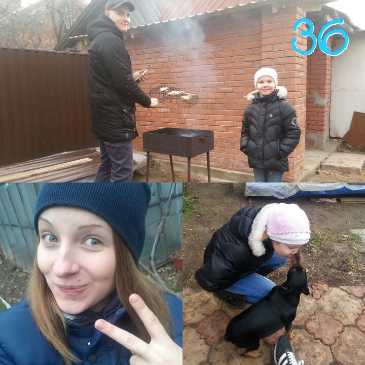 В воскресенье решили выйти на огородик у дома и сделать шашлычок,отметить,так сказать, наше 36неделие))) а на меня ничего свое старое не налезало...пришлось одеть старую огородную куртку своего мужа, в которой я была как сумоист😂😂😂 и как не покривляться!!!)))))