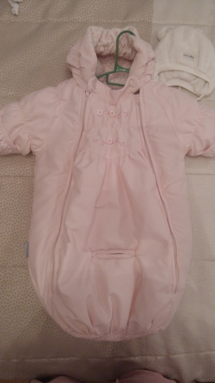 Ну и сверху конверт Керри 56 размера. С месяц точно поносит..Взяла не новый за 1500 р.(на месяц тратить 4500 - жесть для меня) , но довела до идеала. Теперь как новый. Единственное, ткань у него маркая очень, утеплители предполагаю около 250 грамм, так что в коляску овчина будет не лишней.