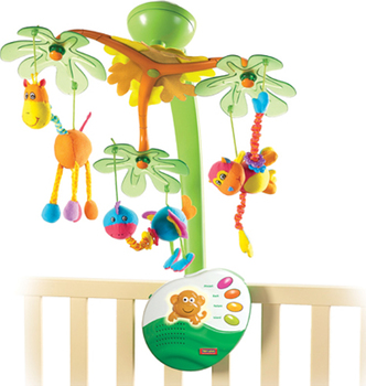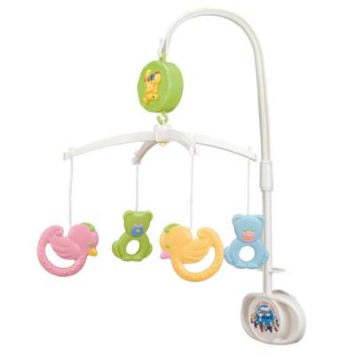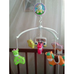 Вроде такого только с мишками. Никуше нравится, и смотрит, и танцует. По утрам выручает, кладу ее в кроватку под мобиль и могу спокойно позавтракать, убрать кровать, умыться, сцедиться. Но нужно постоянно подходить и заводить. Знала бы, что такая штука полезная, купила бы получше, не механический. Из плюсов цена и простота конструкции - мыть удобно.