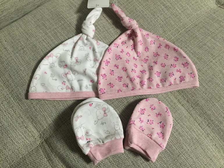 Шапочка и царапки от Мазекеи. 0-3мес. Тоже были на скидке.