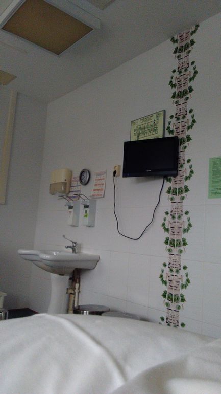 О палате)) все что нужно,всякие штуки для ребёнка тут же,даже телик))