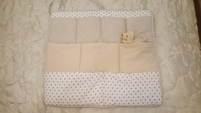 3. Органайзер на детскую кроватку. Можно хранить самое необходимое (крем, ватные палочки, влажные салфетки, погремухи итд), 630 рублей