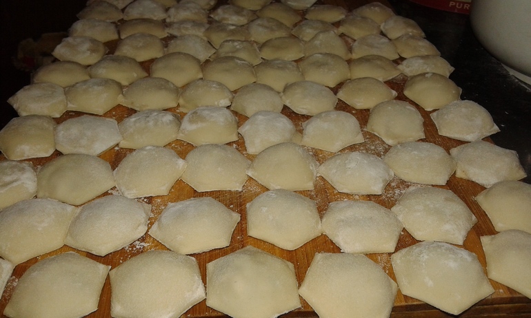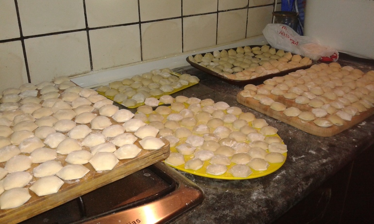 ништяк на такой штуке делать! Я бы тоже столько наделала) а в ручную мне жутко лень. Делаю только если кто-то вызывается мне помочь. Скажи, такие пельмени не расклеиваются ?