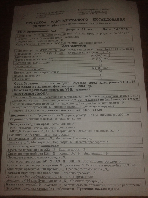 Решила цифры не переписывать, сфоткала само УЗИ, т.к. очень много цифр и данных. И себе на память сохраню.