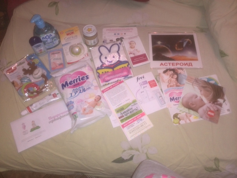 Пришел наш комбез на выписку и дальнейшее использование в качестве второго слоя (третий-конверт-одеяло с овчиной) и вместе с ним подарок по родовому сертификату.Мелочь,но приятно!