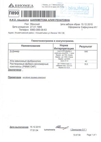 Отправила к гематологу результаты- тишина, может завтра позвонит ...незнаю... Не знаю конечно, может действительно что то добавит... фибринолиз плохой конечно :(