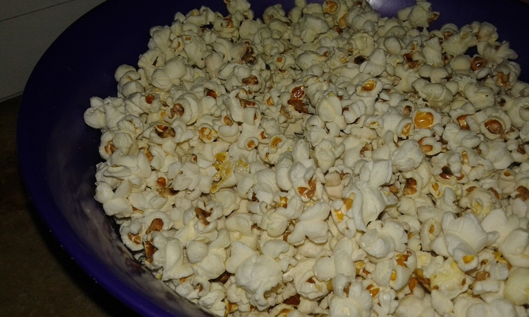 Ой, мы с мужем тоже позавчера тазик попкорна под "Звездные войны" приговорили )) А вчера я купила себе большую пачку воздушного риса, пойду похрумкаю что ли ... ))