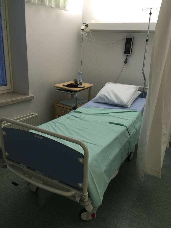 Всю беременность порхала как бабочка, ничего не беспокоило, не болело. 10 декабря вечером начались какие то схватки, сходила в душ, отпустило, ложная тревога оказалась. Потом настало затишье. Пдр наш стоял на 20.12.15, но я хотела родить в такие даты как 12.12.15 или 15.12.15. 12 декабря мы пролетели. 14 декабря я пишу сюда пост нытья в надежде что случится чудо и я рожу в ту дату которую задумала. И, о чудо! 15.12.15 в 4:30 утра начали подтекать воды. Сижу на туалете и звоню врачу, говорю мол текет что-то, а она говорит ждать схваток и если не начнутся то в приезжать в 16:00 в роддом. Из меня постоянно текло, прокладки не помогали. Ну и я как самая умная взяла полотенце между ног и завязала по бокам, в общем ходила в памперсе из полотенца😂 Легла спать. В 5 утра проснулась от начала схваток, были они слабые, но я решила позасекать. Схватки были промежутком 8-10 мин. и продолжительностью 40-70 сек. Схваткосчеталка постоянно писала, что надо ехать в роддом, но я подумала что схватки на столько слабые, что побуду дома. Муж дрых, а я пошла в душ и собирать сумку в роддом, ну как собирать, вернее кидала в нее все, что только можно, как будто в роддом жить уезжаю))) в 11 утра чувствую что боль усиливается потихоньку и решаем с мужем ехать в больницу. В 12:00 меня приняла медсестра, осмотрела, говорит раскрытие 3 см. Фух, подумала я, хоть что то! Поставили мне ктг. Честно? Теперь я его ненавижу. С ним надо было только лежать, а лежа продыхивать схватки мне было тяжело. В 14:00 меня перевели в предродовую, где я ходила по комнате и продыхивала схватки. Вот предродовая палата: