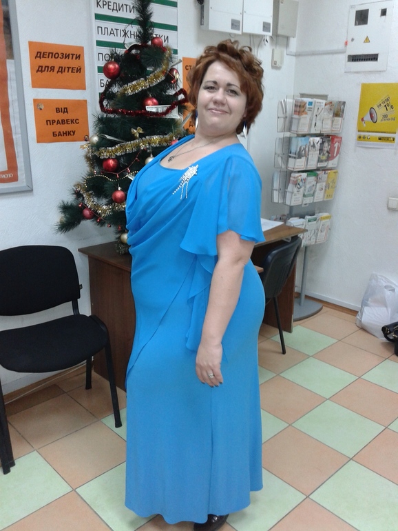 Спасибо. Голубое интересное платье. Это я сзади еще спрятала хвост от него, скрывающее живот. Буду с компа найду фотку в полный рост в прошлом году делала