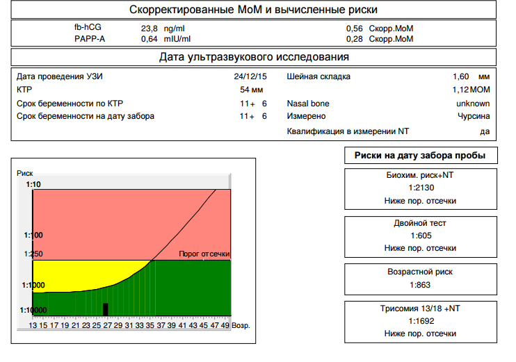 Да узи, и все остальное норма! Мне поставили риск индивидуальный 1:95! Хотя по крови отсечка 1:259! Из за возраста ( мне 36 лет). Пугали, одна даже орала , дескать даун родится... А узистка сказала, что плохо если рарр-а повышен, пониженный не критично. Хотя просила позвонить ей когда рожу сообщить все ли в порядке с малышкой:)))