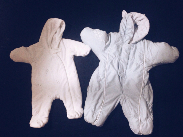 Боди 1шт, человечик хб, тепленький, но тоненький очень! Шапка пока только вот средней толщины, надо еще съездить рейму купить теплую) а ну и еще носочки теплые будут)но вот сверху вопрос! Есть толстенький белый вот такой комбез! И сверху Керри голубой! И я чет не знаю нужен белый нет? Рассклад такой живу в Сибири-матушке, и в конце февраля начале марта может быть и -35, а может и -5. Если дубак будет, одеть наверное белый комбез и сверху голубой?
