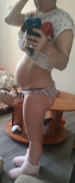 Мне не понятно, откуда столько грубых слов у беременных по отношению к себе? Жирная, пузо... Прям по губам хочется дать. Живот ваш жировым не выглядит, он выглядит на совсем другой срок, у меня такой был ближе к 30 неделям