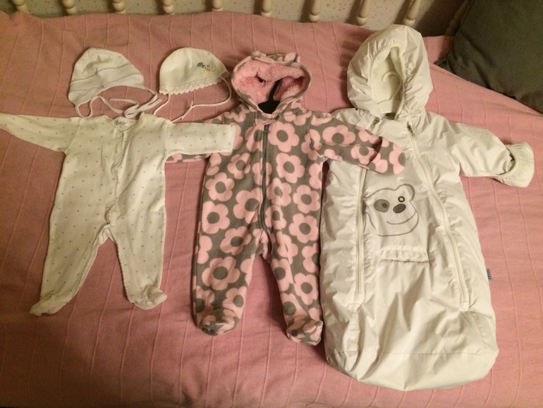 Ну и вчера постирала все к выписке. Рюши и банты я не люблю. Нижний слой с выписки старшей дочки, дальше флис и конверт 180гр. Пдр у нас на конец февраля. Для прогулок есть еще конверт на флисе и пледик.