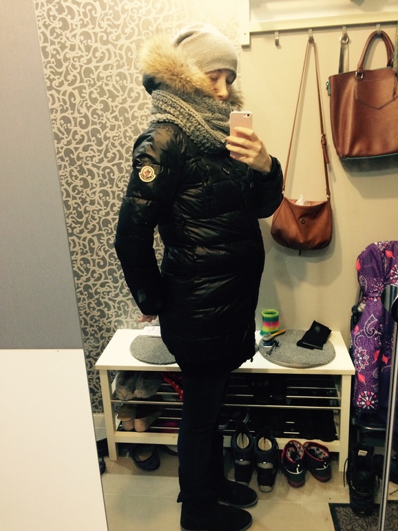 На улице холодно, беременная куртка у меня только демисезон, поэтому пришлось влезть с животом с обычный пуховик.