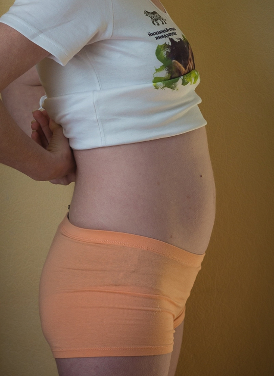 Вот "растолстела" это точно не про вас. Животик еле заметен. Я с 12 недели одежду для беременных стала покупать, т.к брюки не застегивались.