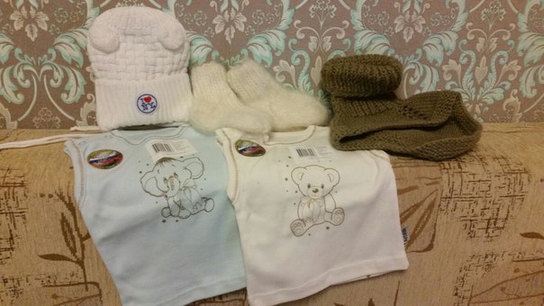 2. Шапочка теплая. Если будет капец как холодно, то тоже оденем на выписку. Вместе со всем остальным) Купила на рынке у нас в городе. 400 р. P.S. моя мама жаждет оторвать лейбл)))