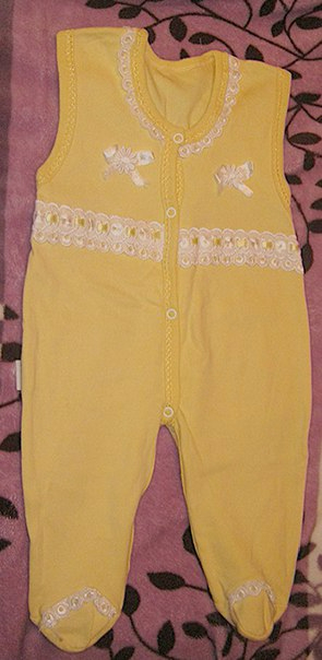 Может я вас огорчу, но распашонки и вправду совершенно не удобные. Надо кофточки на кнопочках или пуговках. Боди лучше с застежкой на плече, а не сзади. И штанишки у вас желтые с белой отделкой...лучше чтобы застежка продолжалась и по шаговому шву-легче надевать,чем в такие ножки засовывать