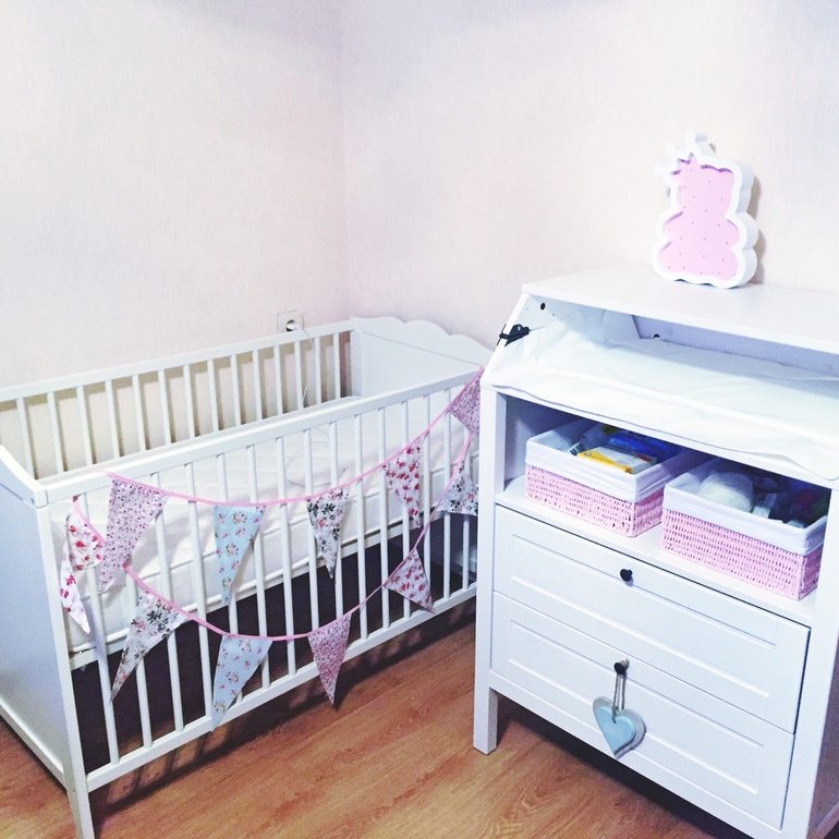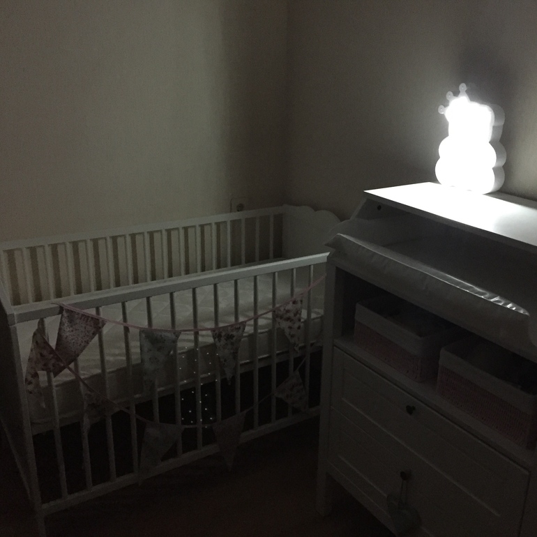 Вот и мы тоже сегодня собрали все!все белое-кроватка и комод) мне очень хотелось именно белое для дочки и переживала что будет не очень красиво ,т.к у нас мебель темная в спальне,а нет! Получилось так хорошо и красиво))) светильник просто чудесный у вас!)