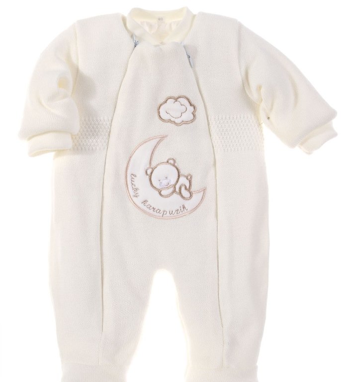 Описание: Детский комбинезон сшит из трех слоев: верхний слой слипа связан из хлопковой нити. Внутри слой утеплителя. Нижний слой - подкладка из мягкого хлопка.