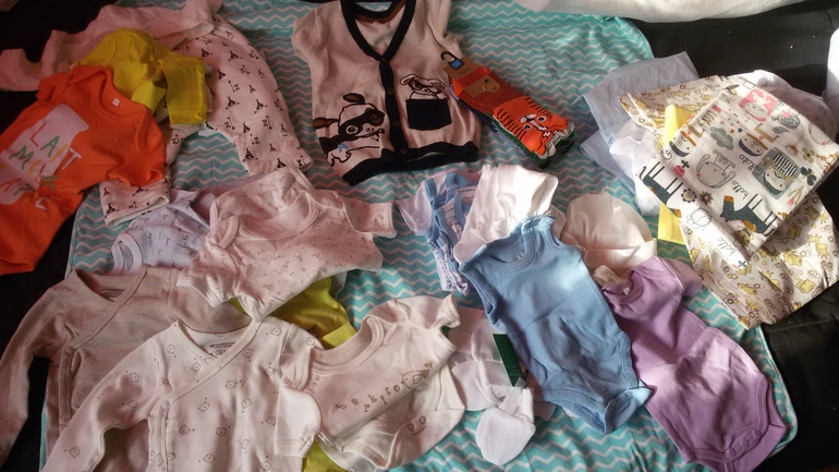 В общем, на распродажах накупила всего, плюс у нас от племянника и старшего брата мешки шмоток лежат) Ну вот мои покупки для малыша
