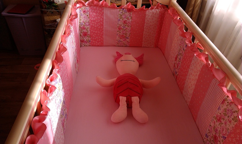 Постельные принадлежностиНе смогла я найти бортики в кроватку такие, которые бы отвечали моим желаниям (основное - размер - сейчас все какие-то высокие. а мне хотелось невысокие). И я решила, что проще сшить самой. В итоге пошарила по форумам, учла все пожелания опытных мам + мои. И вот что получилось. Постельное белье тоже решила не покупать - чё деньги тратить, если до года кроме простыней ничего не надо. К тому же бабуля ситца и бязи целый пакет отдала, надо перерабатывать))) В общем сшились вот такие бортики (параметры и характеристики под фото) + три простыни на резинках (одна розовая и две белые):