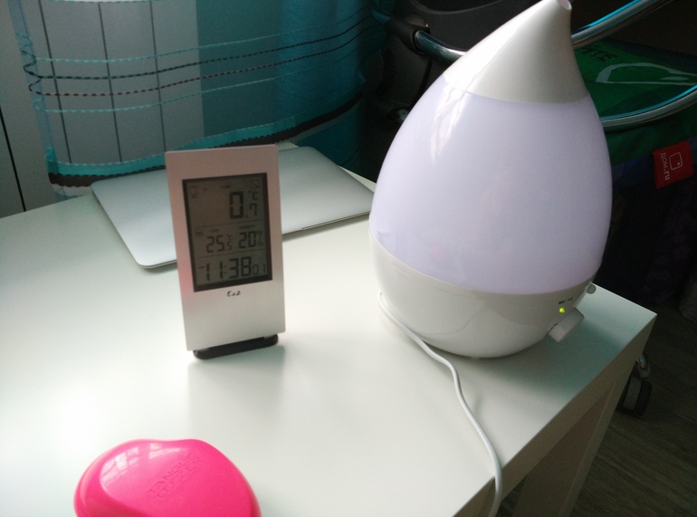 Увлеклась я тут чтением Комаровского, кстати очень полезно, и меня безумно удивил тот факт, что температура и влажность в комнате сильнее влияет на состояние малыша. Начиная от иммунитета к вирусам и заканчивая опрелостями под подгузником. Прочитав всю главу я поняла, что термометр и гигрометр совсем не лишние, а даже нужные аппараты в доме (увлажнитель мы уже приобрели). Искала я их по отдельности, но нашла только обычные комнатные термометры, а вот гигрометр если и есть где-то, то стоимость его достаточно большая + не эстетичный вид. Остановила я свой выбор, как и советует Комаровский, на электронных часах оснащенных всеми нужными датчиками. Итак, вот мое приобретение
