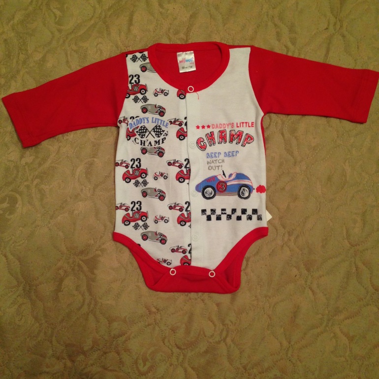Вот пошел магазинно))))) а я что-то решила бодики в этот раз не покупать, мы не носили до 9 мес. Только когда ползать начинал, я стала их одевать со штанами.