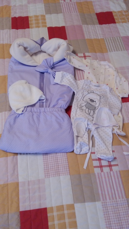 2.Конверт тоже без утеплителя.Слип хб,одеялко запеленать,чепчик хб и шапочка