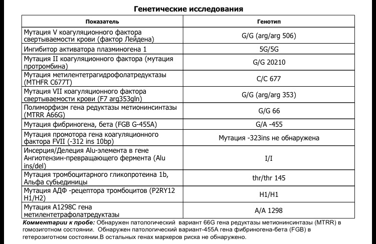 Не переживайте, в том или ином виде мутации генов гемостаза есть почти у всех. У вас всего одна гомозиготная мутация, этот ген отвечает при Б за обмен гомоцистеина и фолиевой к-ты. Обсудите с врачом, вам скорее всего рекомендуют повышенные дозировки фолиевой кислоты, особенно в 1 триместре и мониторинг гемостазиограммы в теч Б.