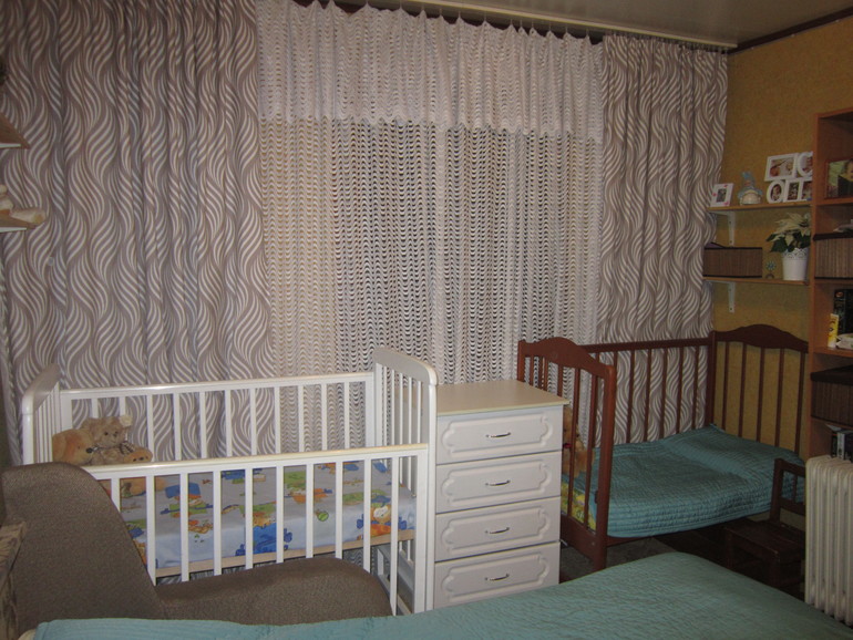 Теперь о "гнездовании". Оно у меня в полном разгаре. Мне приспичило купить новые шторы и люстру. Мы убрали из спальни телевизор чему я очень рада! Теперь стали много читать и сами и с сыном. Я разобрала все шкафы, выстирала коврики (это было очень тяжело, но они мне спать не давали). Теперь они чистенькие и у меня душа поёт, глядя на них (у беременных точно не всё в порядке с головой=). Мои родители предложили помощь и я ею воспользовалась. Они приехали, помогли собрать кроватку, убрать стеночку у Лёшкиной кроватки, мы намыли в комнате все углы, вытерли всю пыль, поставили комод для Мишеньки. Всё так чудненько уместилось! Вторую кроватку и комод мне отдала родная сестра. Они уже другую купили. Очень экономно вышло!