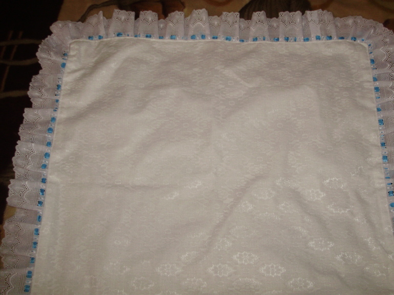 Само одеялко 70х70, вместе с кружевом 80х80. Я ориентировалась на готовый детский уголок,который вместо пеленки идет.