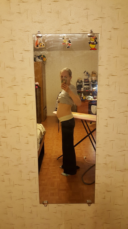 за первый триместр скинула около 3 кг, к середине беременности удалось вернуть 2 из них) вес начал постепенно расти, но судя по всему это именно живот, который под вечер вообще вываливается)) ( фото под кат)