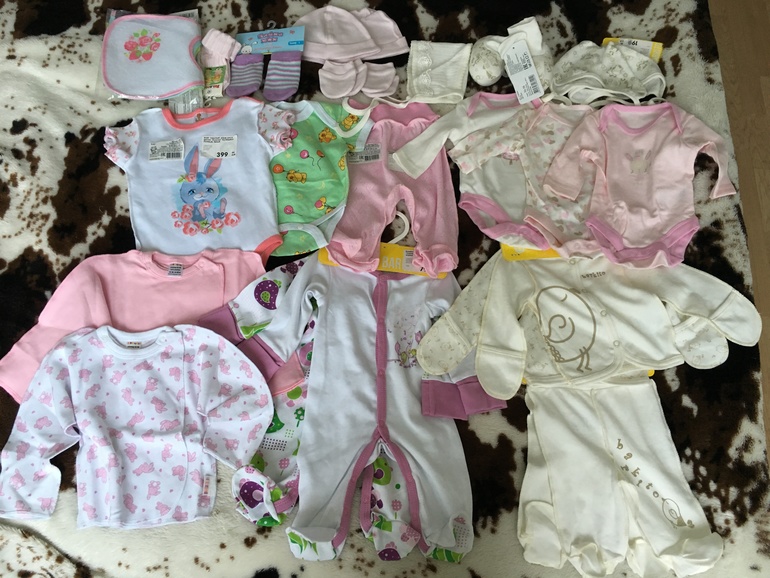 Одежду брали на первое время размеры nb, 56, 62 совсем немного.