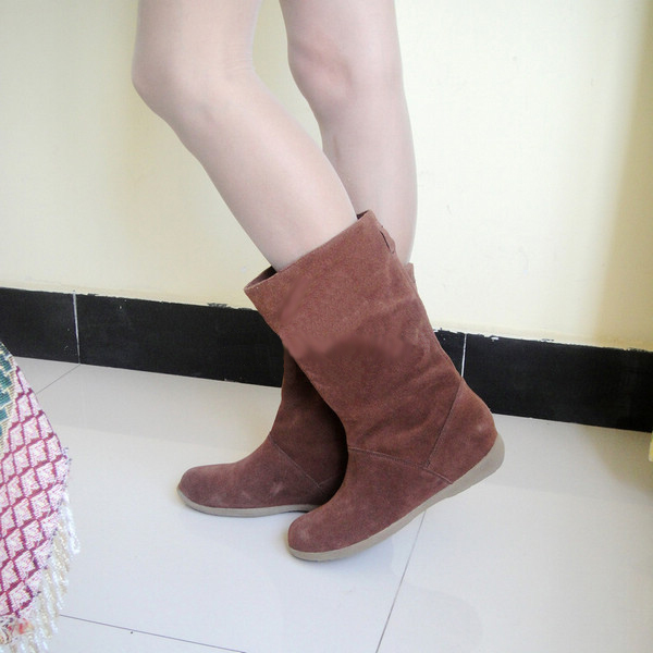 У меня замшевые и кожаные ботинки.сапожки типа ковбойских ещё есть,на потеплее ещё сапожки тканевые под джинс.