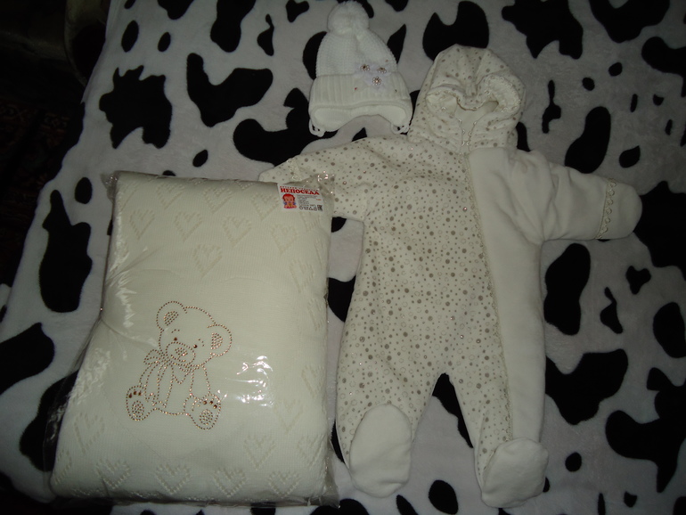 Один из них будет нижним слоем,боди 62р,а костюмчик 56р(но мне кажется,что они оба маломерят),будем смотреть на то какими мы родимся. Безумно приятные на ощупь 100% хб. Сверху наденем теплую шапочку,велюровый комбинизон и на случай если будет холодно накроем пледиком. Не хочу кутать лялю,ну и ехать нам от роддома до дома максимум минут 10-15.В конверте не вижу смысла, надеть его 1-2 раза. Думаю что не замерзнем?