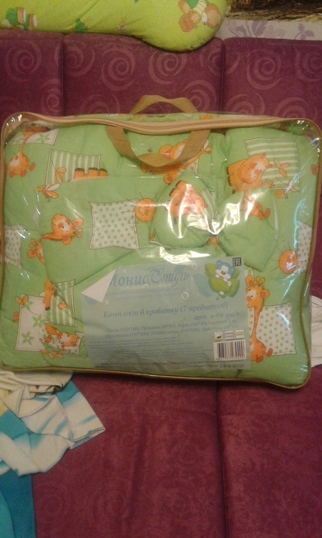Постельные принадлежностиКупила я комплект в кроватку для нашей прынцессы) у нас детская будет в салатово белых тонах...он из 7 предметов :балдахин,одеялко,подушка,наволочка,простынка и пододеяльник...и бортики...кому интересно прошу под кат...