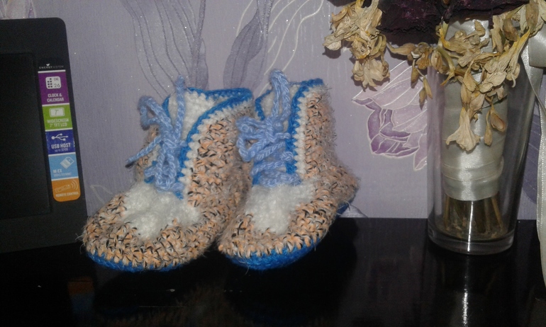 моя тетя связала для нас кеды.. правда они большеваты для новорожденного...обещала связать еще одни на выписку...так приятно...первые подарки для малыша...😊❤