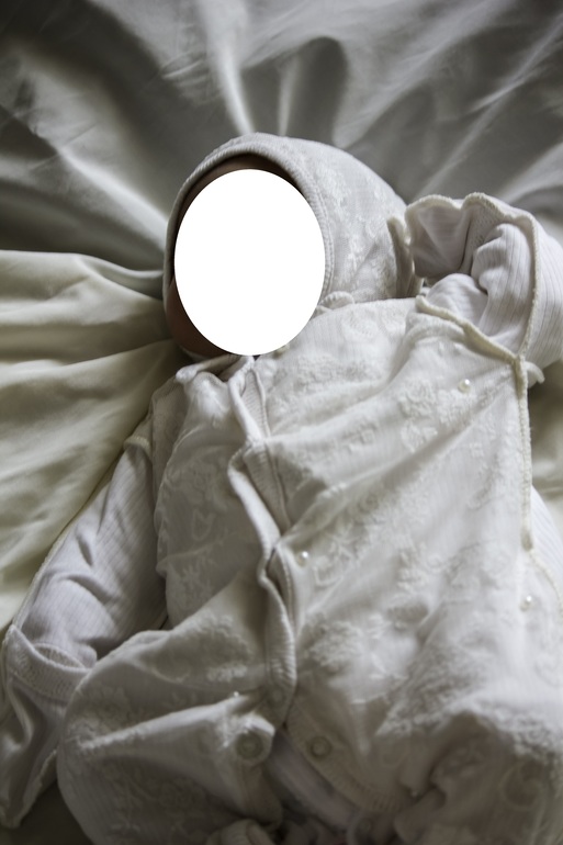 Подгузник, распашонка (было очень ветренно, пришлось одеть), носочки, слип и шапочка. Планировался вязаный плед, но его не успели довязать (родились раньше), поэтому были без него, о чем я ничуть не жалею.