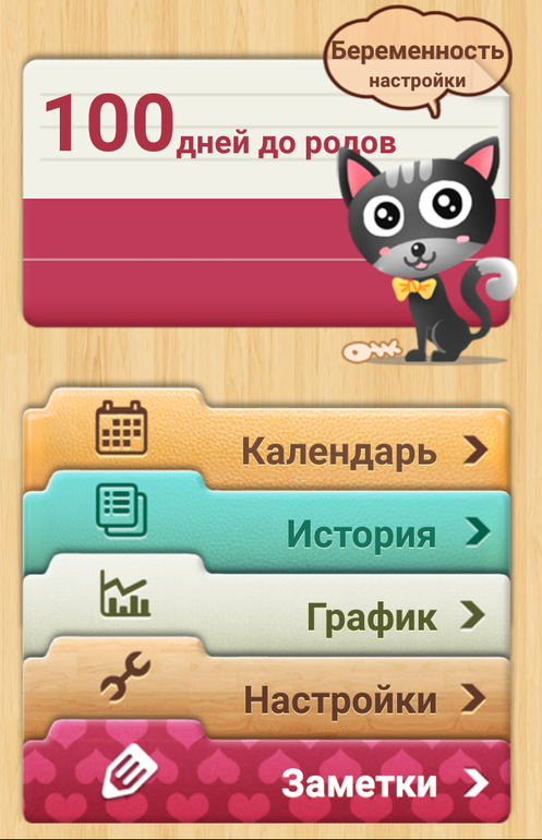 Мой календарь называется, на значке красная книжечка с желтым цветком, с ПлейМаркета скачала. Я там раньше месясные отмечала, удобно было, он овуляцию расчитывает,показывает благоприятные дни для зачатия, но для беременности этот календарь без пользы, так, случайно зашла и увидела, что до родов 100 дней))))