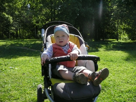 Пришел черед выбмрать прогулочную коляску. Вот тут мы зависли. Смотрели на Совенке кучу вариантов и когда в руки мне попала по тем временам новинка Пег Перего ЖТ 3 и нам ее очень граммотно разрекламировали, мы пропали с мужем. До этого склонялись к Конкорду, но выбрали ее, да и еще в очень редкой расцветке Цедро. На тот момент я считала ее идеальной коляской. В ней и правда продумано было все до мелочей. Это выпуск 2009 года(дальше они начали портится). Мой крупный Миша восседал там как король. Никакого ужасного веса коляски я не чувствовала. Ездили мы с ней везде-везде. Довольны были на все сто. Откатали год и со скрипом в сердце расстались, сменив на докатку полегче.