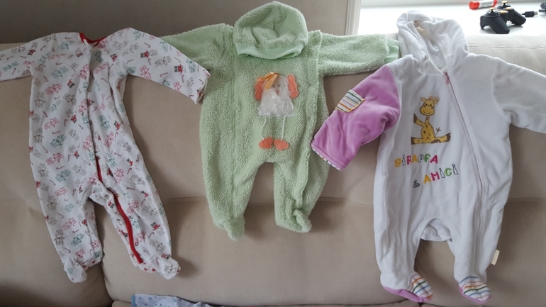 Вчера добралась до коробок с детскими вещичками и отобрала то, что можно будет надеть и на мальчика. Совсем розовенькие в цветочек костюмчики и мизерные платья отложила подруге в подарок). Кое-что было совсем новое, с бирочками даже, что с Машей не успели одеть. Но Платошечке в самый раз будет.