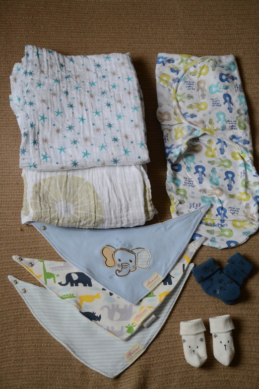 3. То, что осталось неопробованным со старшим: пеленка на липучках (гитарная тема призвана ублажить папу) и муслиновые пеленки на лето. Муслиновые крутые, кстати. Здоровые, тоненькие и мяконькие)