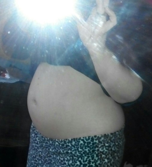 Фото пузиковСегодня устроила фотосессию пузику))) Со всех сторон, как смогла))) Стал меняться мой пупочек, подпирают его снизу теперь заметно - а значит малыш растет)