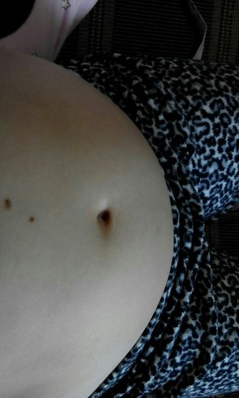 А у меня он пока только внизу торчит и появилось ощущение, что изнутри дааавит на живот) Я сначала как-то испугалась даже. Растяжек нет пока)