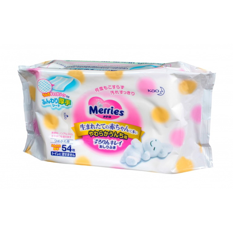 8. Детские влажные салфетки Merries 54 шт. (по опыту знаю что они самые мягкие и нежные! Беру для себя, вместо всякой туал.бумаги, ну и руки протирать.)