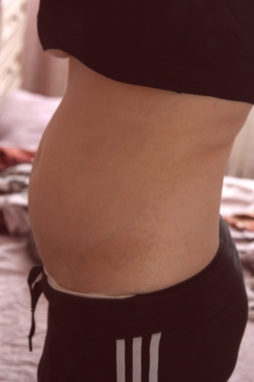 И вот,сегодня сделала утром первое фото животика. У меня есть лишний вес и,кажется,для моей комплекции ,это не большой животик?