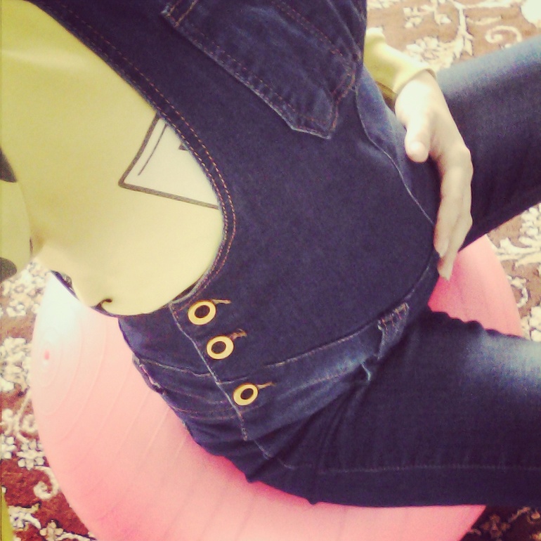 Вот такие кругленькие мы стали к 19 неделе. Поясница ноет жуть как, спасает гимнастика на фитбуле. Мало во что уже влажу, купила комбез для беременяшек.
