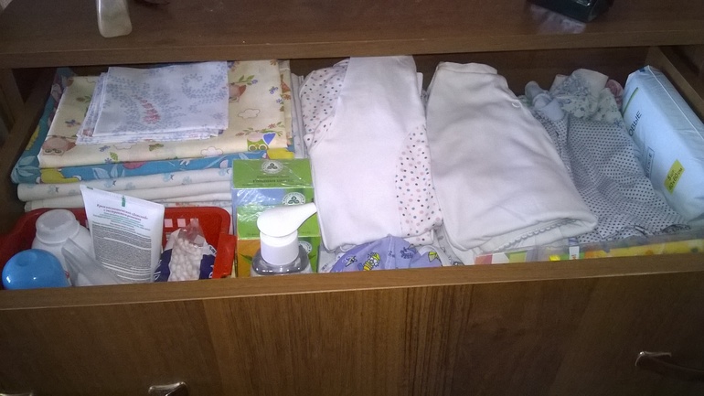 1.Вещи уже постираны и поглажены лежат в комоде.